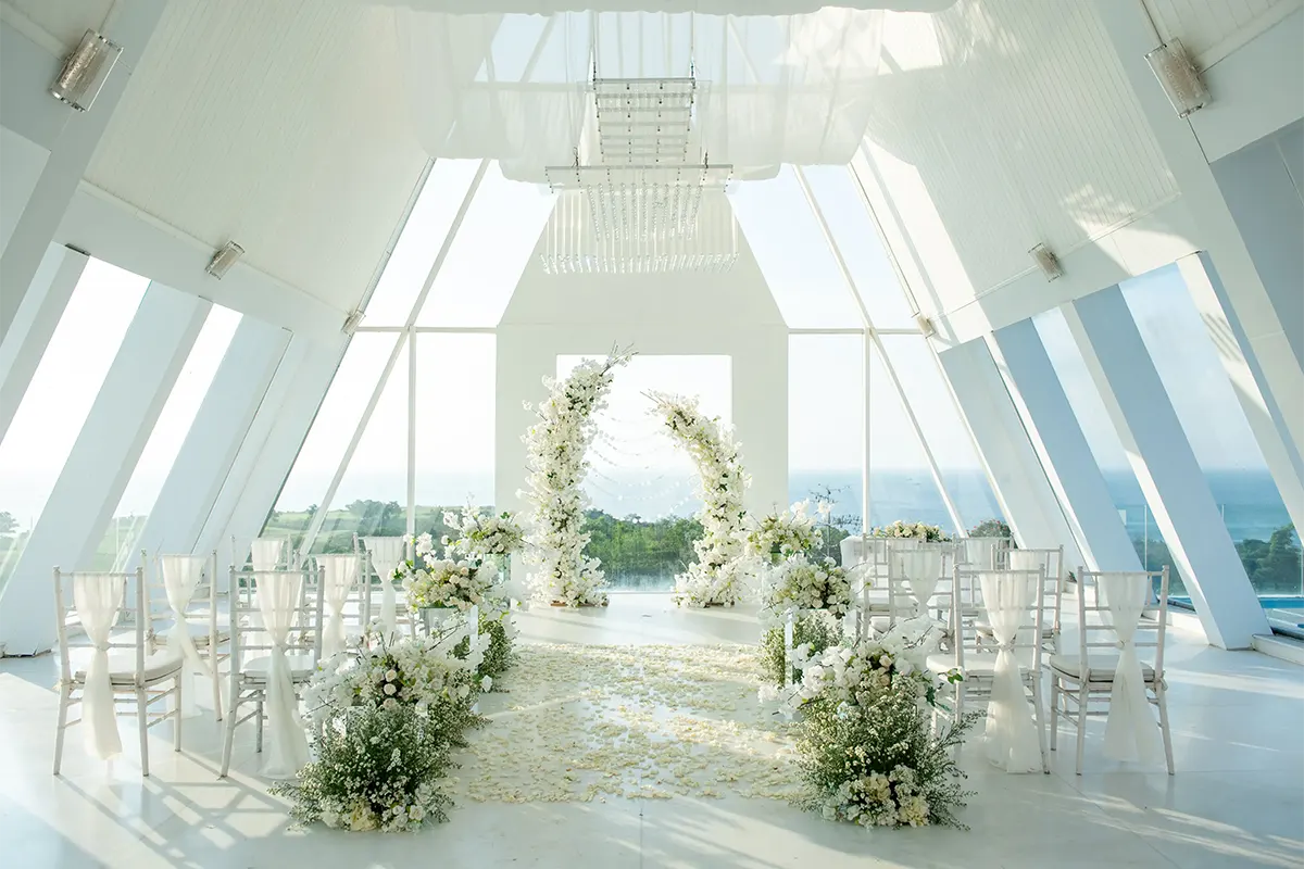 • Fresh and personalized decoration including decorative flower arch and altar table arrangement